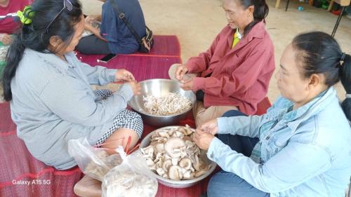 จากนั้น ได้มีการสาธิตและฝึกปฏิบัติอาชีพจริงตามความต้องการของสมาชิกกลุ่ม ได้แก่ การทำเห็ด ๓ รส โดยมีวิทยากรปราชญ์ชาวบ้านภายในหมู่บ้านถ่ายทอดองค์ความรู้ ทำให้สมาชิกสามารถนำไปประกอบอาชีพ สร้างผลิตภัณฑ์ของกลุ่ม และต่อยอดพัฒนาเป็นผลิตภัณฑ์อื่น ๆ เพื่อสร้างรายได้อย่างยั่งยืนต่อไปในอนาคต